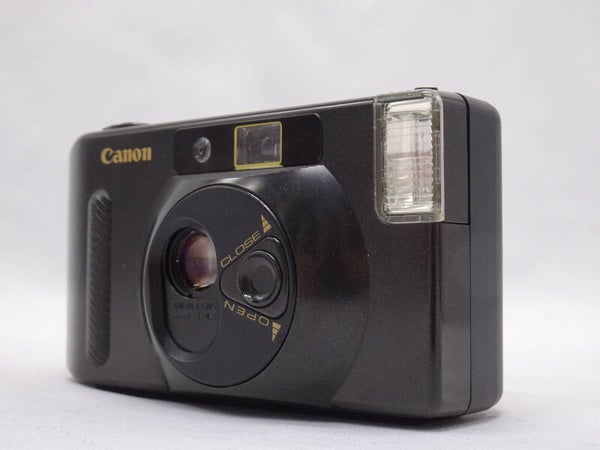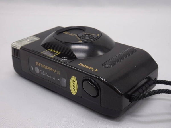 The Canon Snappy S (Snappy S-30 FF in Europe) of July 1985 is a compact camera for budget-conscious photographers, and was the third member of the Canon Snappy series. It was available in black, red, green, and yellow. An interesting design quirk was that the lens cover rotated to close the lens and switch the camera off.