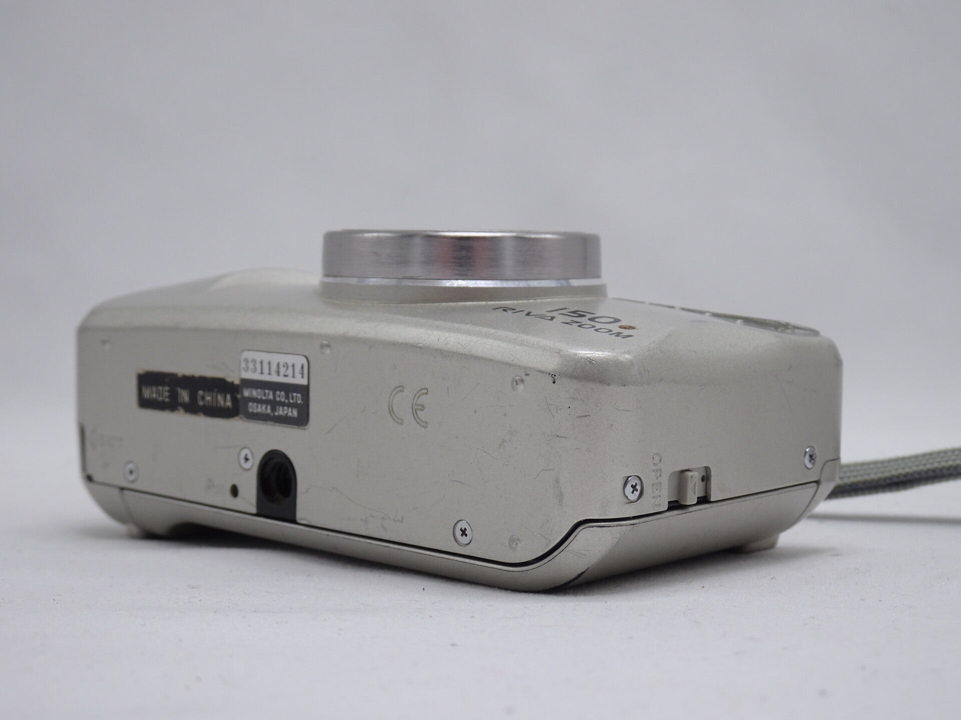 The Minolta Riva Zoom 150 is a compact camera for 35mm film made in the year 2000. These were made in China. It's a full automatic camera with a focus-lock function and a range of flash settings. An accessory remote control was available as well as a data-back version. It was also sold as the Freedom Zoom 150.