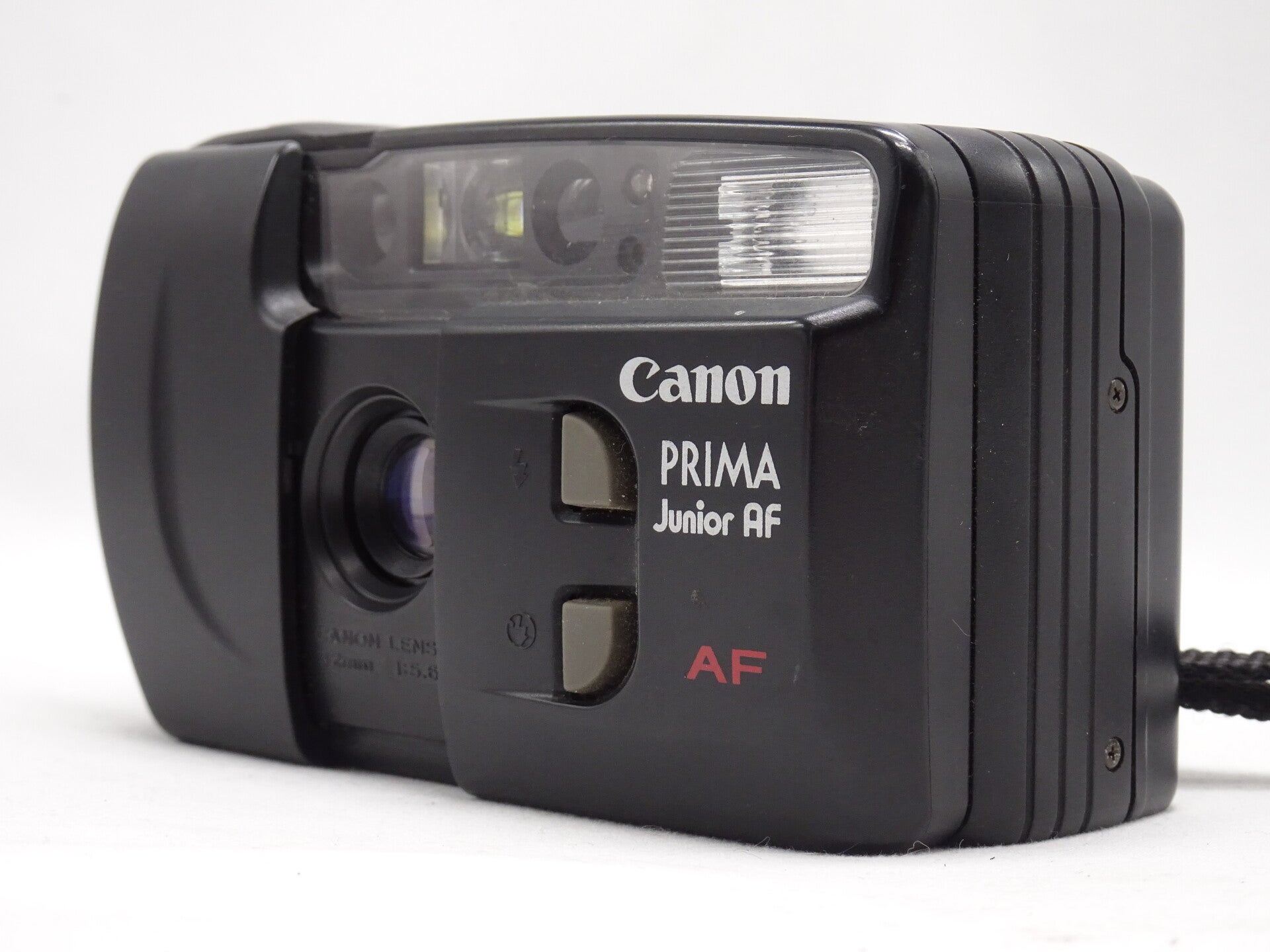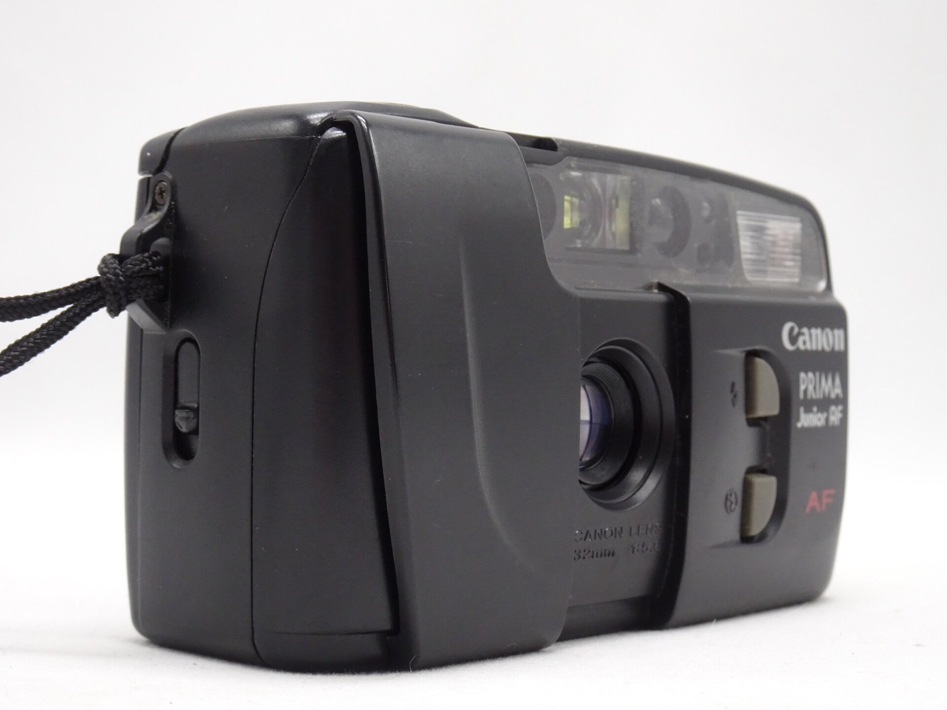 The Canon Prima Junior AF (or simply AF 32 in America) is a budget compact autofocus camera released in 1995. The lens is a wide 32 mm with an aperture of f/5,6, which makes the inclusion of autofocus questionable considering the wide depth of field available with such a lens (in fact, the autofocus only works in two ranges). The case is of the popular and robust clamshell type, with the two front buttons for controlling flash modes typical for Canon's cheaper cameras in the 90s. The same body was also used for the cheaper fixed-focus Prima Junior DX released in the same year.