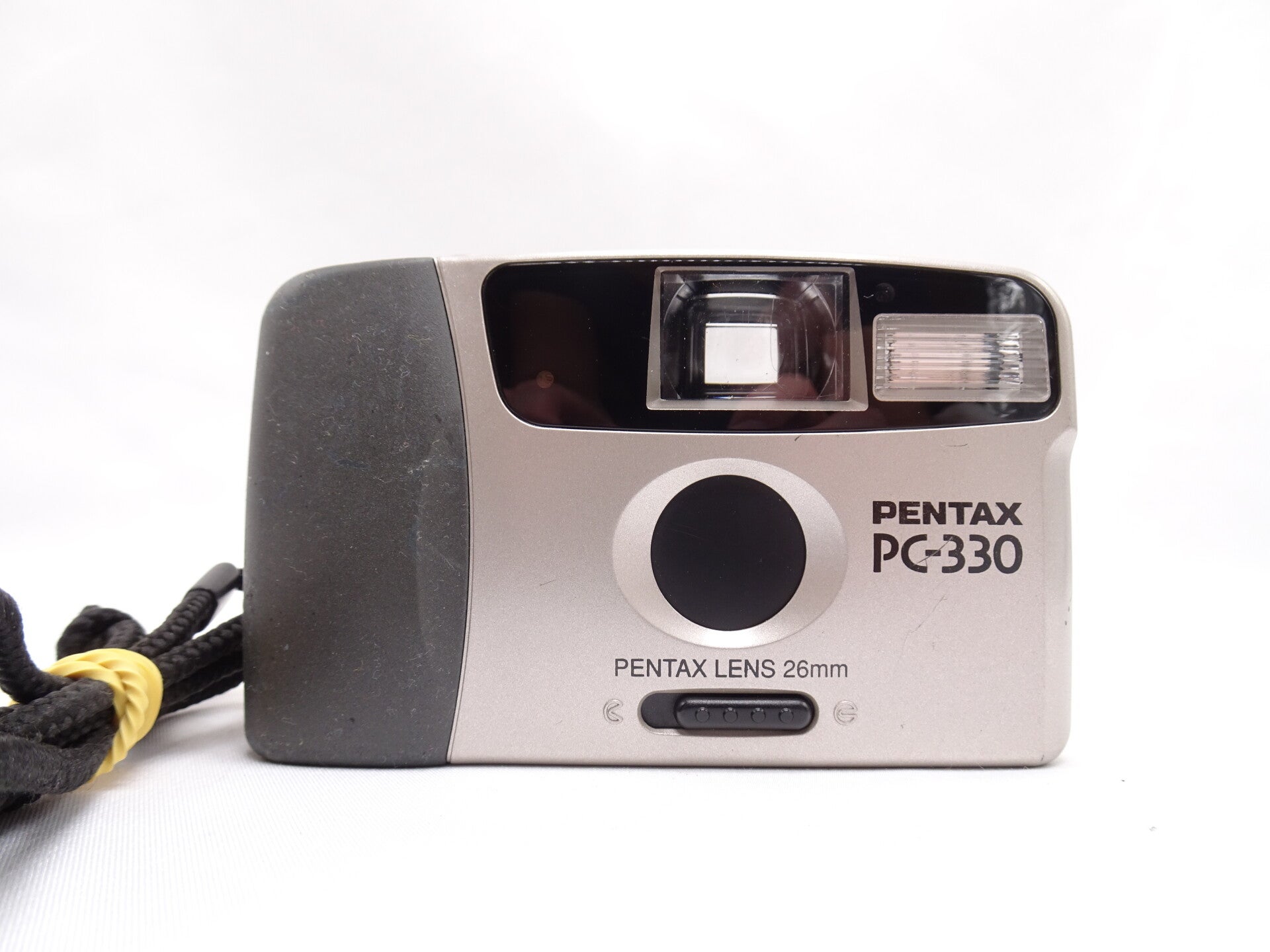 The Pentax PC-330 is a compact, plastic viewfinder camera from 1999. These were made for Pentax in China. This model is a focus free variant of the PC line of compacts, it focuses from 1 meter to infinity.