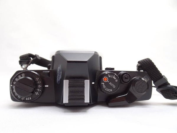 The Mamiya ZE was introduced in July 1980. It has a quartz-controlled focal-plane metal shutter and a center-weighted photo diode. In aperture-priority AE mode exposure can be corrected ± two stops, and a previously-metered exposure can be locked in "AEL" position. In the viewfinder LEDs show the selected exposure time.
