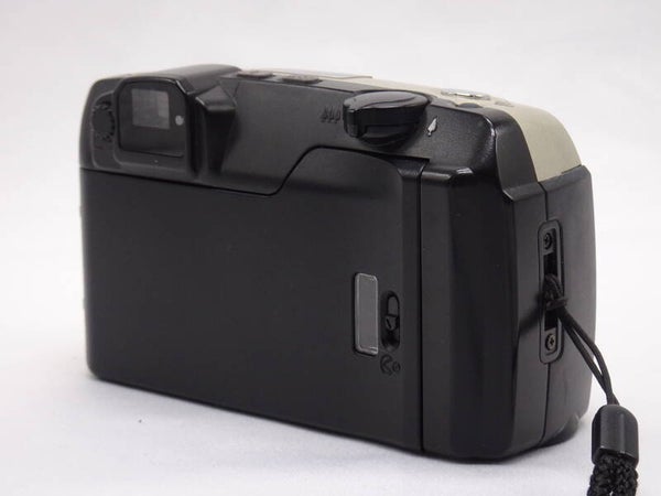 The aperture of the zoom lens is from f/11 to f/4.5. Shutter speeds in AE modes are 1 to 1/360 of a sec. The finder only shows 83% of the view. Using non-DX film is not a great idea as the camera is set by default to ISO 25. The film loading is automatic and upon closing the back the film is advanced to the first frame. Completion of the last frame will automatically rewind the film.